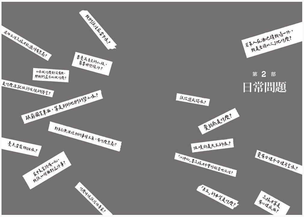 書中的問答讓我們感受到哲學的平易近人。可以很隨心,也可以很認真。生活由很多「為甚麼」開始,實在沒有甚麼是不能問的。只要願意多問一句,視野也擴闊一點。