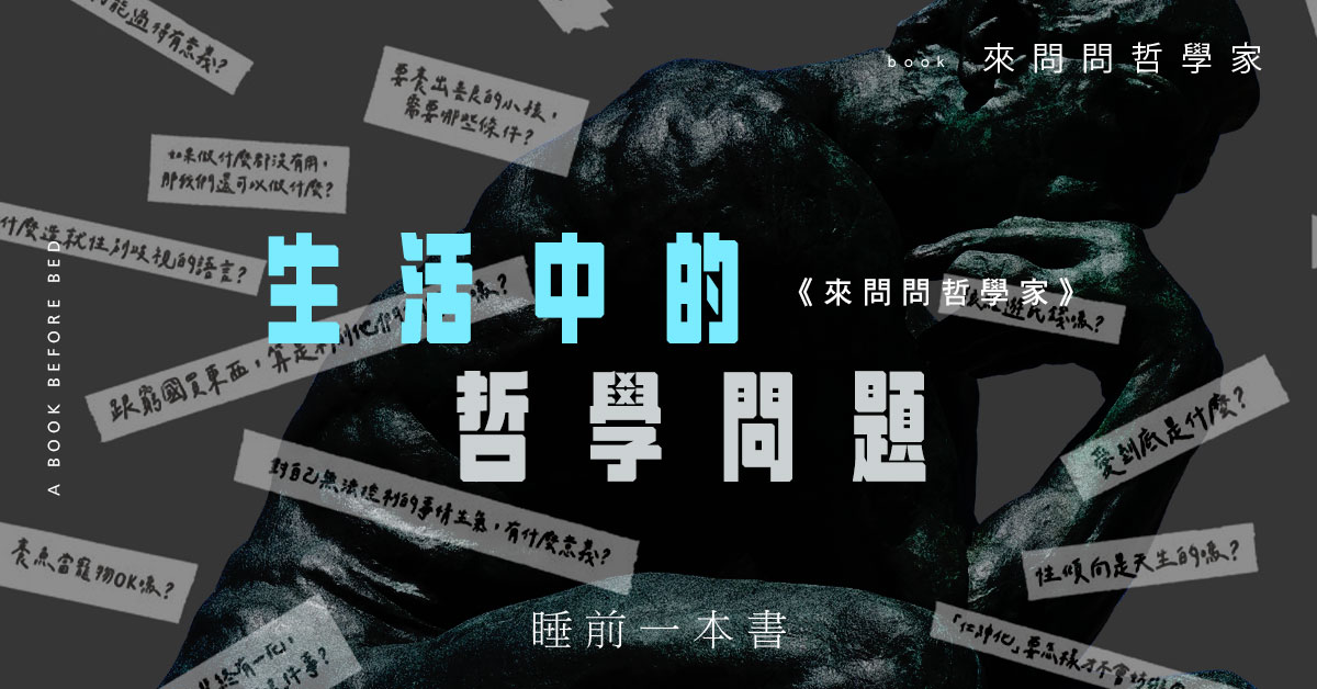 前來的人很多,問題還真是五花八門。有些讓作者啼笑皆非,有些也讓他陷入沉思。於是他先與我們分清楚:到底甚麼是哲學問題?「若對於一個問題,我們連該用甚麼方法來研究、該從何處獲得證據都沒共識,那這個問題就是哲學問題。」