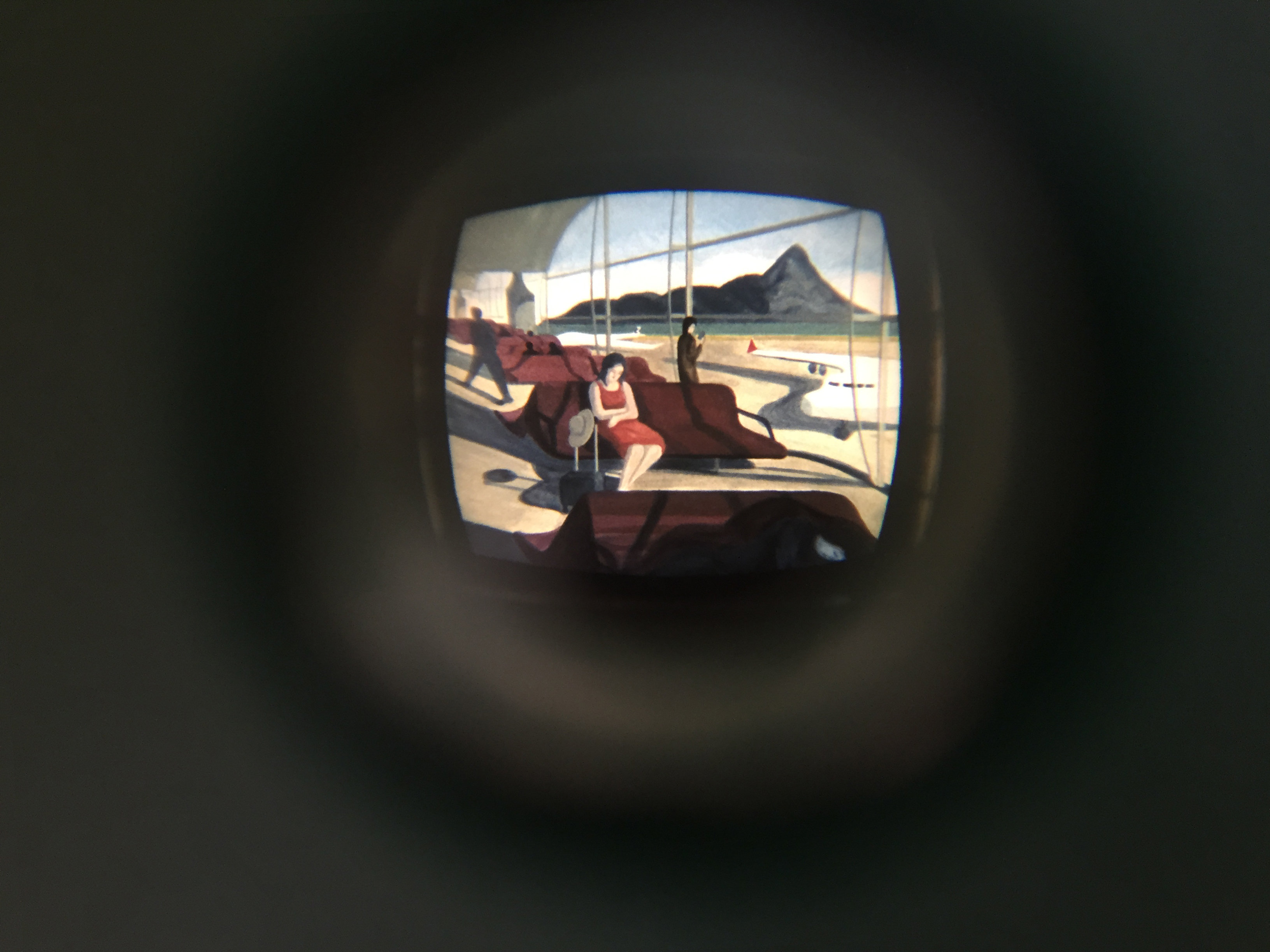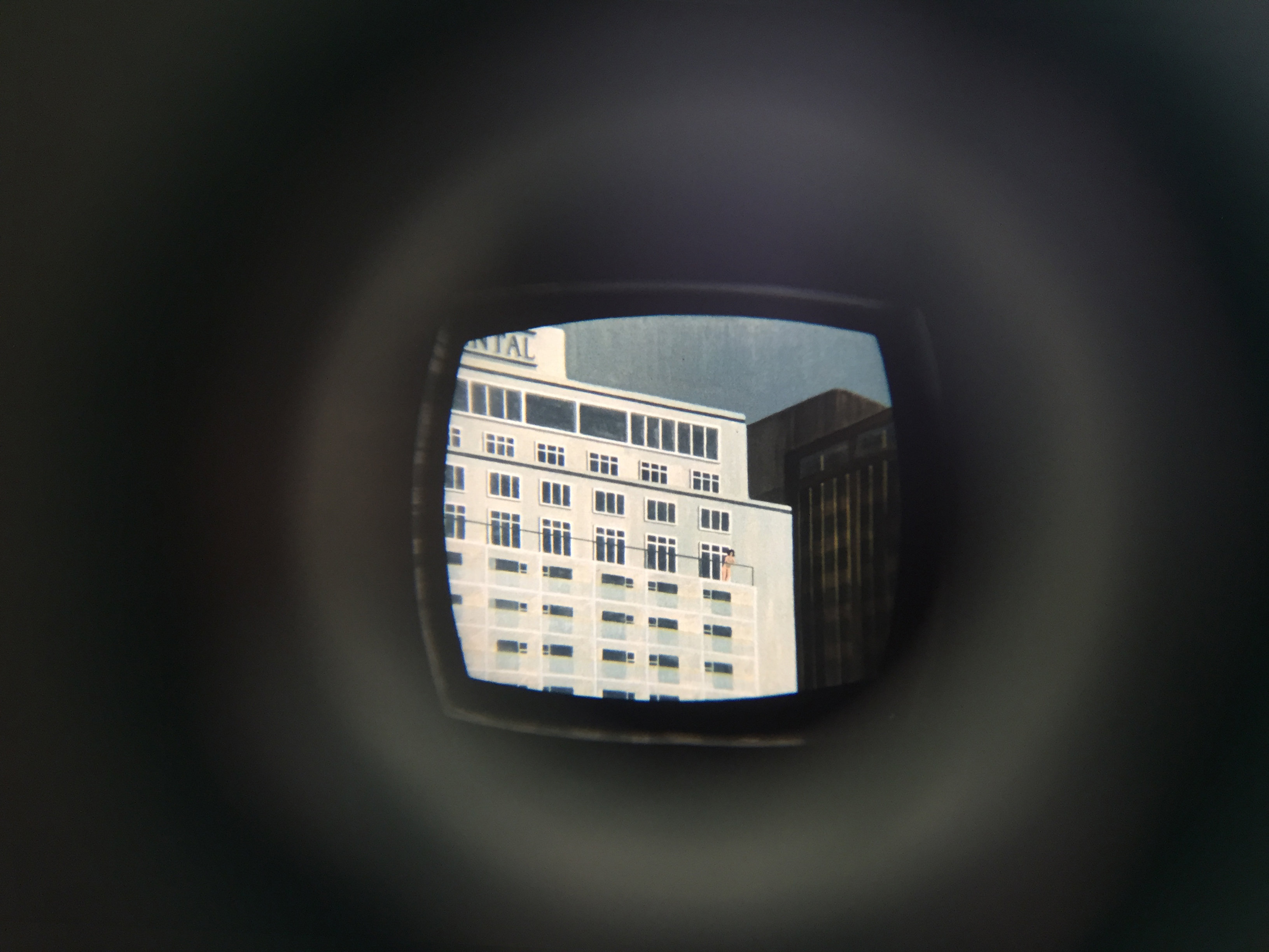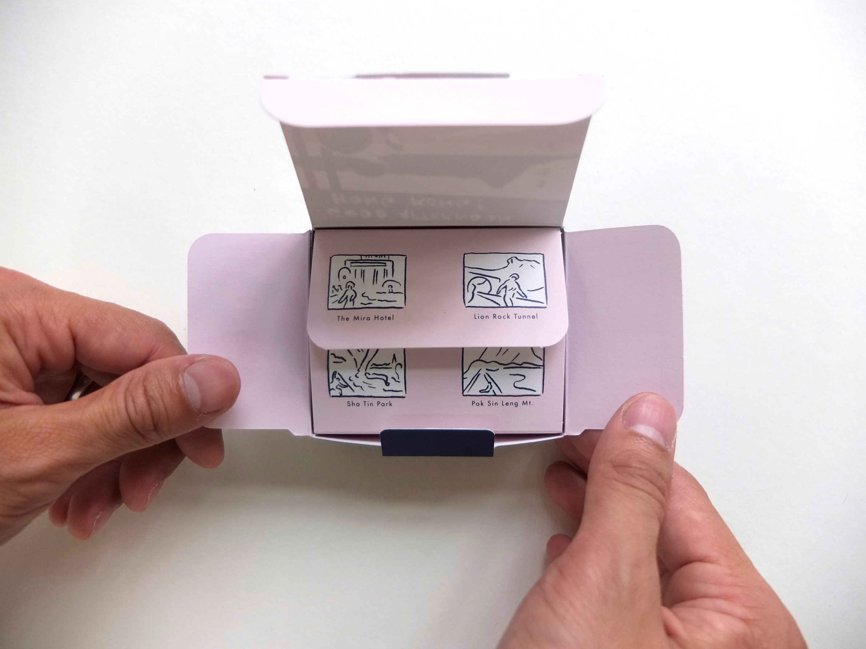 這算不算一本書?《香港午安》只有一個火柴盒大小,打開「書本」有開箱的感覺,內裏有一部玩具電視機、八張幻燈片,和中英文說明書《八景筆記》。先不用急於看說明書,不妨以電視機看幻燈片。