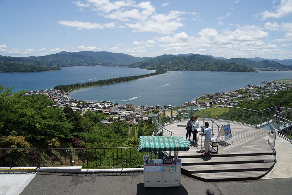 天橋立是一條全長3.6公里、闊20至170米的沙堤,種有約8,000棵茂盛的松樹,姿態猶如飛上天際的橋樑而得名。除了能身在天橋立的沙洲之上,亦能欣賞「飛龍觀」及「斜一文字」兩種不同景觀。