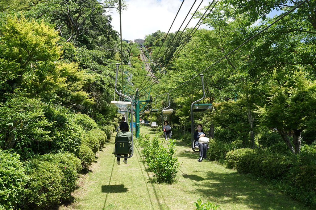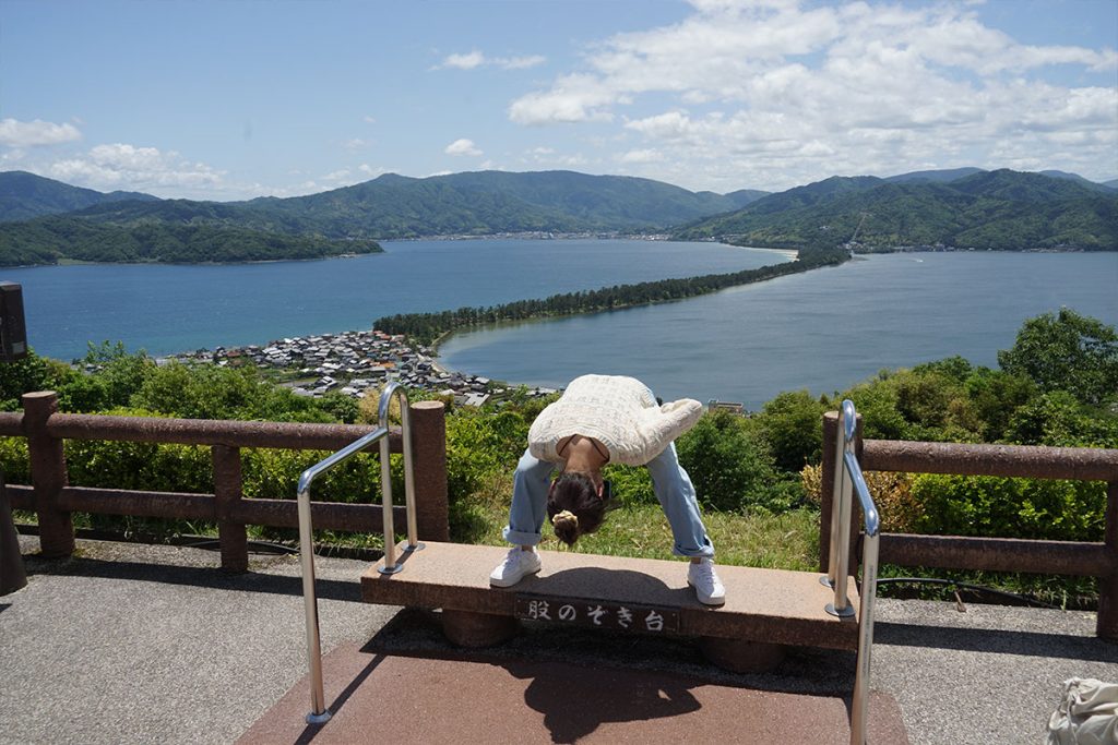 選擇在傘松公園攻頂,坐在沒有安全帶的吊椅,雙腳在空中半天吊,有點坐機動遊戲的刺激感。觀景台有攝影師預備為旅客拍照,亦有馳名的「胯下望」台階 —— 從屁股下兩腳之間倒看天橋立,能看到天地逆轉的錯覺景象。這看法除了需要花點想像力也考腳骨力,這個觀光例行公事也不妨試試。
