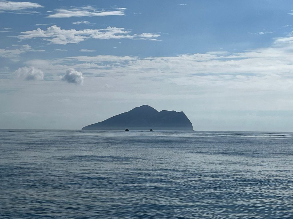 由於海豚成群結隊,如果船隻在牠們附近太久會對牠們造成干擾,於是我們懷著感恩又依依不捨的心情,向牠們說再見,祝願牠們能夠繼續自由自在在這片大海暢泳。與牠們道別後,我們終於要來登上這座宜蘭人的精神象徵、龜山島了!