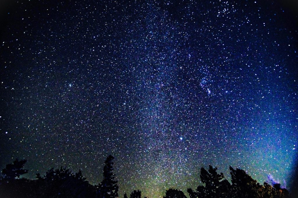 獨特的冬季星空 黑暗高地上的點點光芒