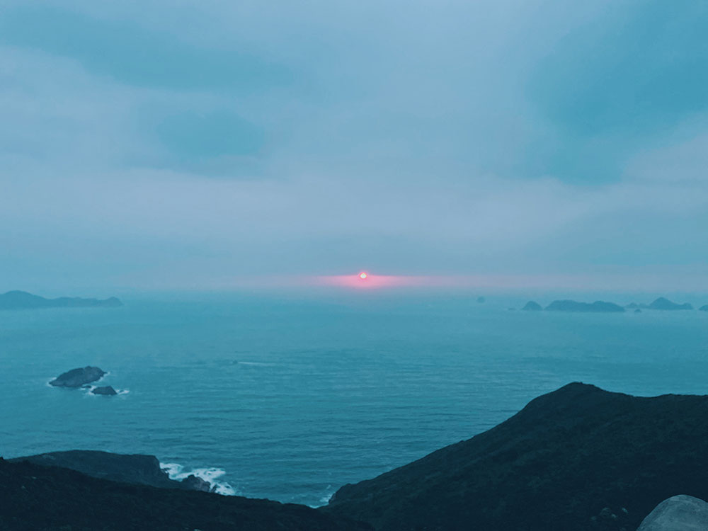 這個離家特別近,於清水灣大拗門的小山成為我們愛到的避風港,總是在想到時便上去看日出,不需45分鐘的路程便已登頂,算是非常輕巧的一座山了。有次上到去烏雲密佈,大風得很,正以為甚麼都看不到的時候,幸福來得太突然,一絲耀眼的光線衝破雲層,這大概名為曙光;有時候是月色晈潔,看著海上倒映的月色就能感受到平靜;有時是遇上不遲到的太陽伯伯,或光或暗的照耀出山頭的弧度。這些難以捉摸的山頂風光,讓我們一次又一次都充滿期待及驚喜。