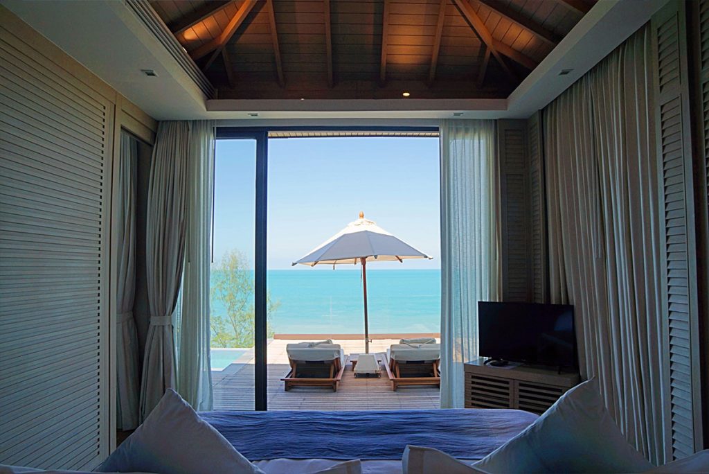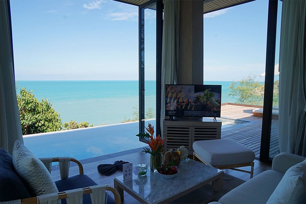 一房及兩房別墅有6種不同景觀,喜歡方便的可入住位於山腳,享受熱帶園林景和海灣景致;想有充足私穩度,則可選更高處的山海美景。別墅面積由3,700呎起,樓底很高,以簡約泰式設計配合柔和的大地色系,有種自然舒適的家居感。落地玻璃窗外寬敞私家露台,設有私人泳池,還能隨時隨地享受一望無際的藍天大海風光,不想做嘢只想懶,放假本該如此愜意無憂。