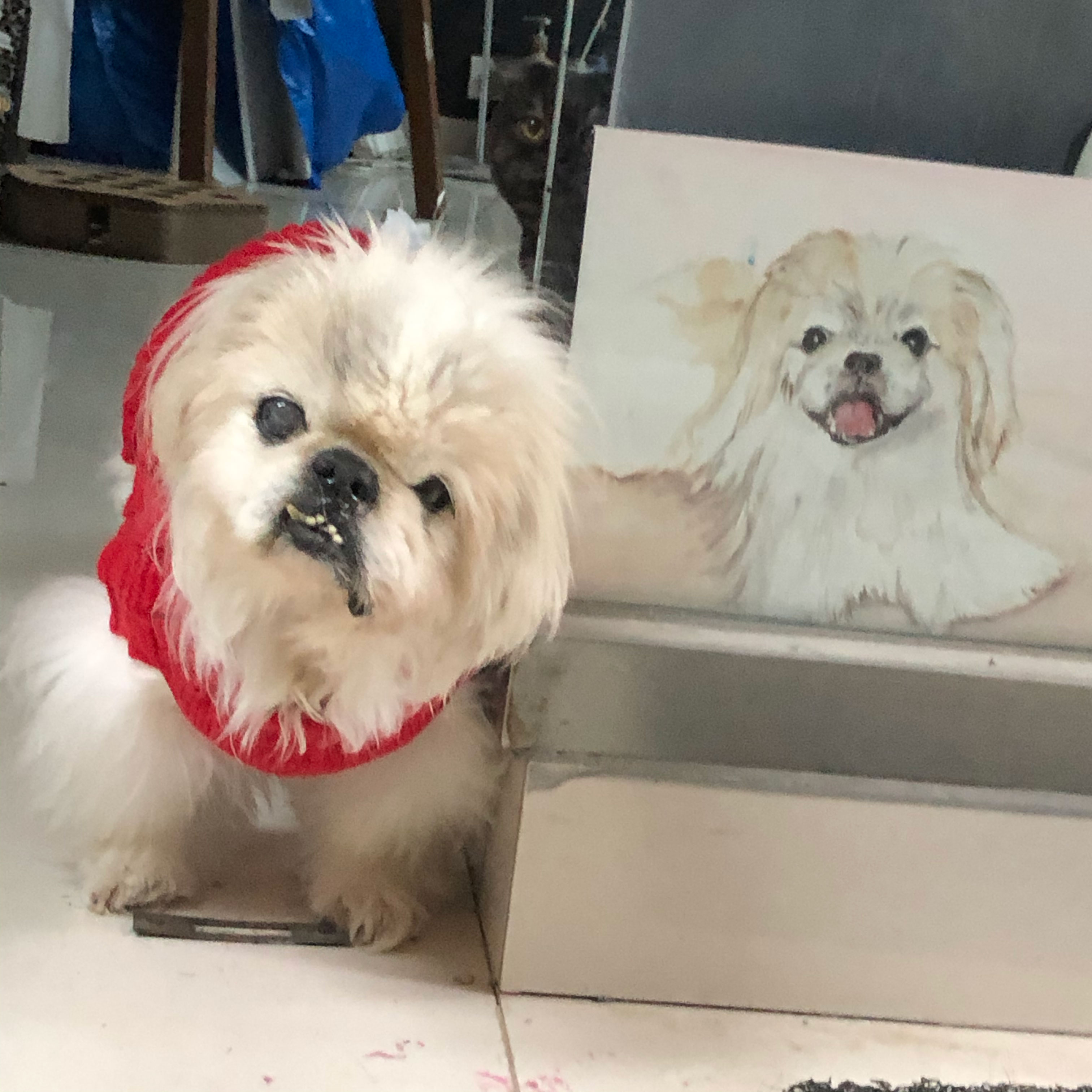眼晴是靈魂,從貓狗的眼睛,Emily 看到牠們渴望人們的愛。而她是以水彩作畫。「水彩有很強的流動性,油墨多或少,力度大還是小,甚至室內還室外(因為有風)也會影響作品。」她從來不是追求一種像真,而是一份可愛的、獨一無二的神態。
