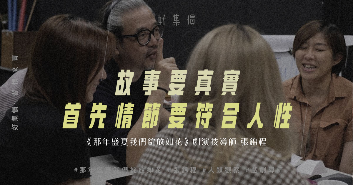 熱愛思考的張錦程,習慣追求對每一件事物本質上的理解。談到「演技」,他首先說其實「演」這個字並不準確。英文「Acting」的意思更為貼近,他說「To act is to do」,戲並不應該是演出來的,其實 Actor 們是在 Act,在「執行」某些東西。也許廣東話中的「做戲」更為貼近,演員們要把一場戲「做」得貼近真實,做到一種近乎騙到觀眾的效果,讓觀眾片刻相信眼前的故事。故事要真實,不止要演員演得自然,首先是情節要符合人性。那麼要把戲做得好,首先要懂得看人性。