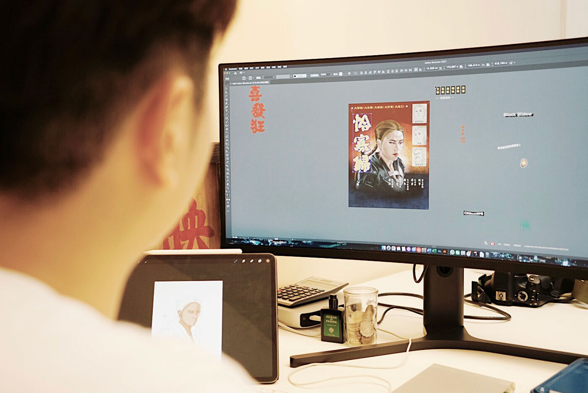 今年26歲的恒仔,從小喜愛繪畫,對人像情有獨鍾。本是平面設計師的他,就在工餘時開始了「無紙用工作室」,在網上分享人像作品,但無論畫得多似,卻依然感到不滿足。直到他看到了本地畫家阮大勇的海報作品,靈機一觸,生出想法,「不如將人像與海報結合,又可以帶出多點意思。」