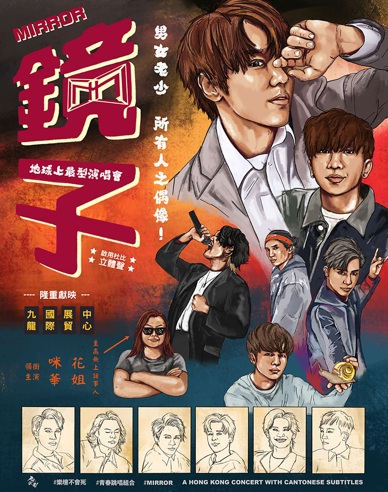 雖然自己少有舊海報,但幸好身邊有位舊海報收藏家朋友,讓他不斷研究舊海報的風格。除電影外,他漸漸開始從日常生活及流行文化中取材,例如香港人會上頭柱香的習俗,甚至近來掀起本地追星熱潮的 Mirror 等畫海報。他希望以舊有的繪畫風格,紀錄生活日常,用自己的方法,留住這一個時代的香港。