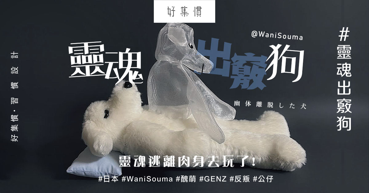 說遠了,其實是想介紹近日在日本爆紅的玩偶「靈魂出竅狗」,由日本玩偶品牌 Wani Souma 設計的毛絨公仔:一隻睡得香甜的小狗,靈魂以透明的淡色形態漂浮在半空,彷彿在夢中「靈魂出竅」,造型簡單卻充滿戲劇性,既現實又非現實,更有說設計既具生話感,又有哲學意味,更有一種「放鬆、夢想與回歸自我」的意味。原來,與之前「怪奇」與「醜萌」異曲同工,公仔爆紅的原因不止於其新奇的造型,而是完美融合了日本當下流行的「癒し系(healing)」文化——在繁忙與焦慮的社會中,人們透過這樣的玩偶尋求精神慰藉。設計師 Wani Souma 是一位目前在日本非常受歡迎的獨立「ぬいぐるみアーティスト」(絨毛玩具藝術家),一向愛將超現實與幽默感,化身溫柔與想像。當然,也多得社交媒體,玩家買了以後在社交網絡 #靈魂去玩了,便引起病毒式二創或分享。