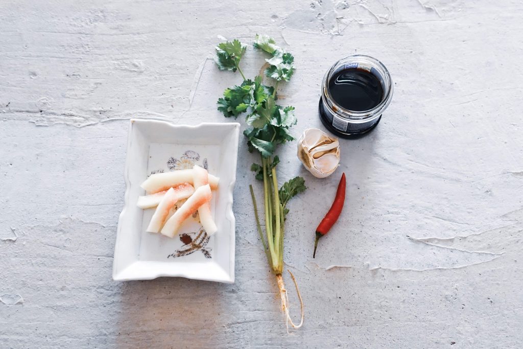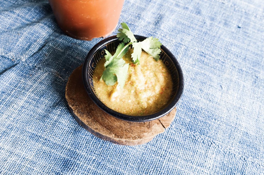 芫荽根配乾蔥、蒜、辣椒、鹽和青檸汁可拌成醬。