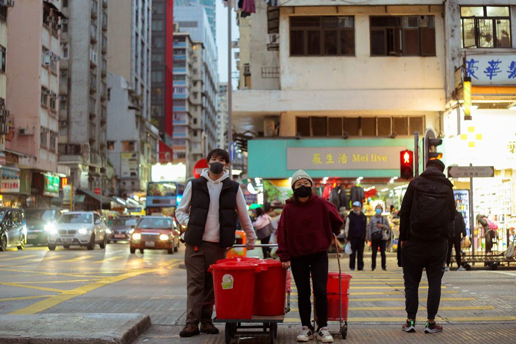 每個星期總有幾天,Steph和同事Marcus會以手推車推著紅色膠桶,穿梭著旺角的大街小巷。鮮紅膠桶內盛著的,是幾十至百多公斤的茶渣和果皮回收。在今時今天的香港,也許你會聽過廚餘回收、咖啡渣回收,但原來茶渣也能回收,而且乾淨無臭。