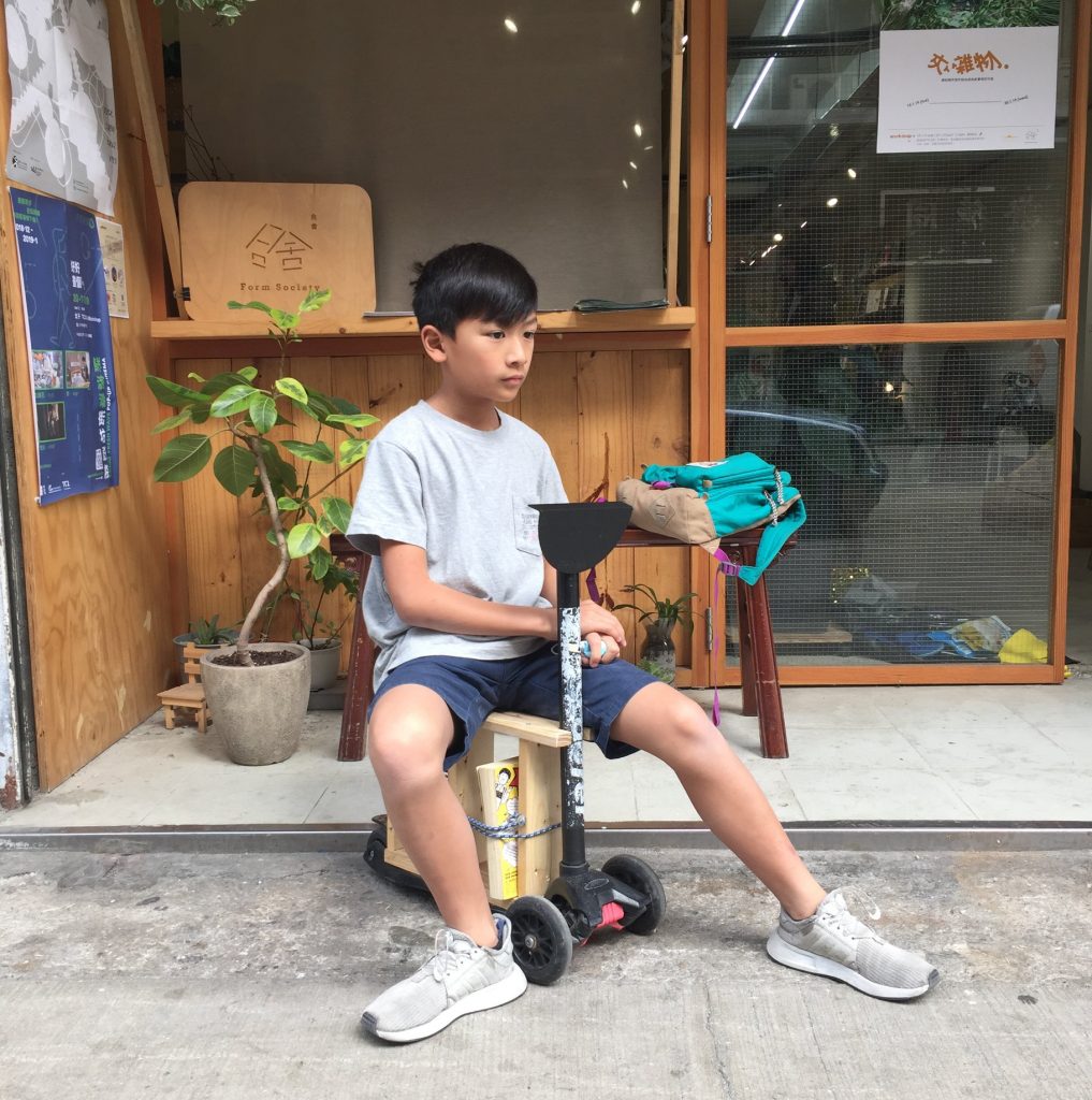 他們表示另一位小朋友更有想像力,在實驗期間談到偶爾會送書給朋友,於是最終在滑板車上加了一個木架,既可以坐著駕駛,又可以送書。