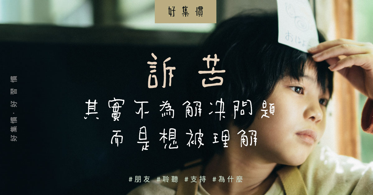 其實,訴苦的人未必不知道解決問題的方法,又或者不是需要別人安慰,他們單純希望自己的處境被了解而已。如果朋友面對工作問題,晚晚加班至深夜十分辛苦,不要急着下定論:「這一定是爛工作,趕快辭職吧!」反而可以多問:「為什麼這麼辛苦,你還願意留在這個工作環境?」多給對方解釋的機會,可能對方在等待重要的升職時機,可能對方有家庭的顧慮。人人有不同的價值觀,可能你覺得這些原因並不重要,但這些時候,不用表達自己認同還是不認同,更不要否定對方的想法。