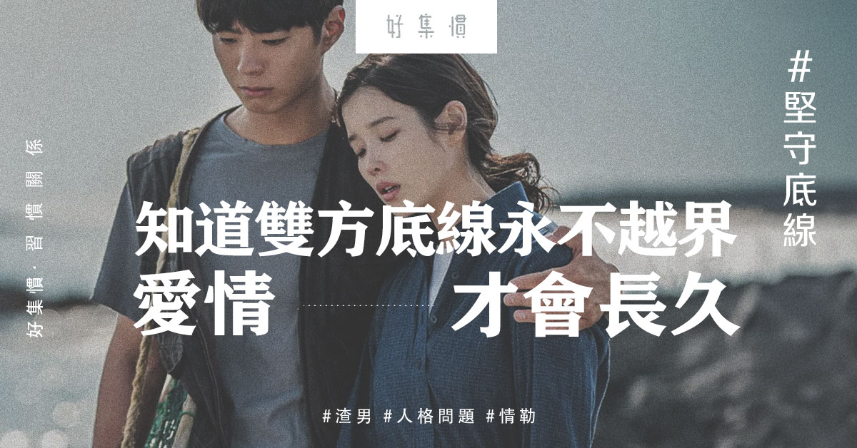 後來發現,很多人追求時沒發現甚麼端倪,一起後對方才漸漸顯露出人格問題,這時另一半大多會選擇忍受,一次又一次的試探,換來下一次更過分的行為,結果由忍受變承受,再由承受變接受,到接受不了便分手。原本你的底線是他不能跟人曖昧,後來竟一再原諒他出軌;說好搬出來同居後一人負責一部分開支,後來竟變成你要擔起所有開支,還得包容他三不五時的 emo。