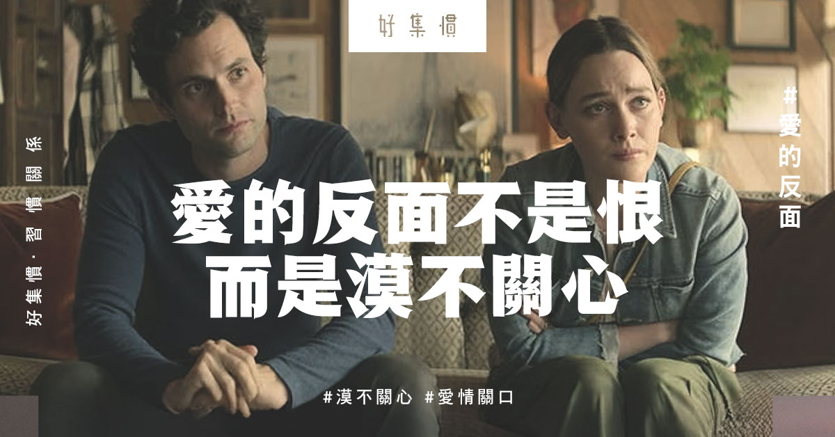 愛的反面不是恨,而是漠不關心。當你覺得另一半對你的事情漠不關心,不在意你做錯任何事,不再責怪你埋怨你,你不應該感到快樂,這不是他對你變得比較寬容,而是他已經不愛你了。當你不再愛一個人,會對他變得異常冷漠,根本不願再多花一點時間和心機在對方上。你不再在乎,也不再氣憤,因為你知道他的未來已跟你無關,只是在等待一個合適的時機說分手,或是冷暴力直至對方受不了提分手。