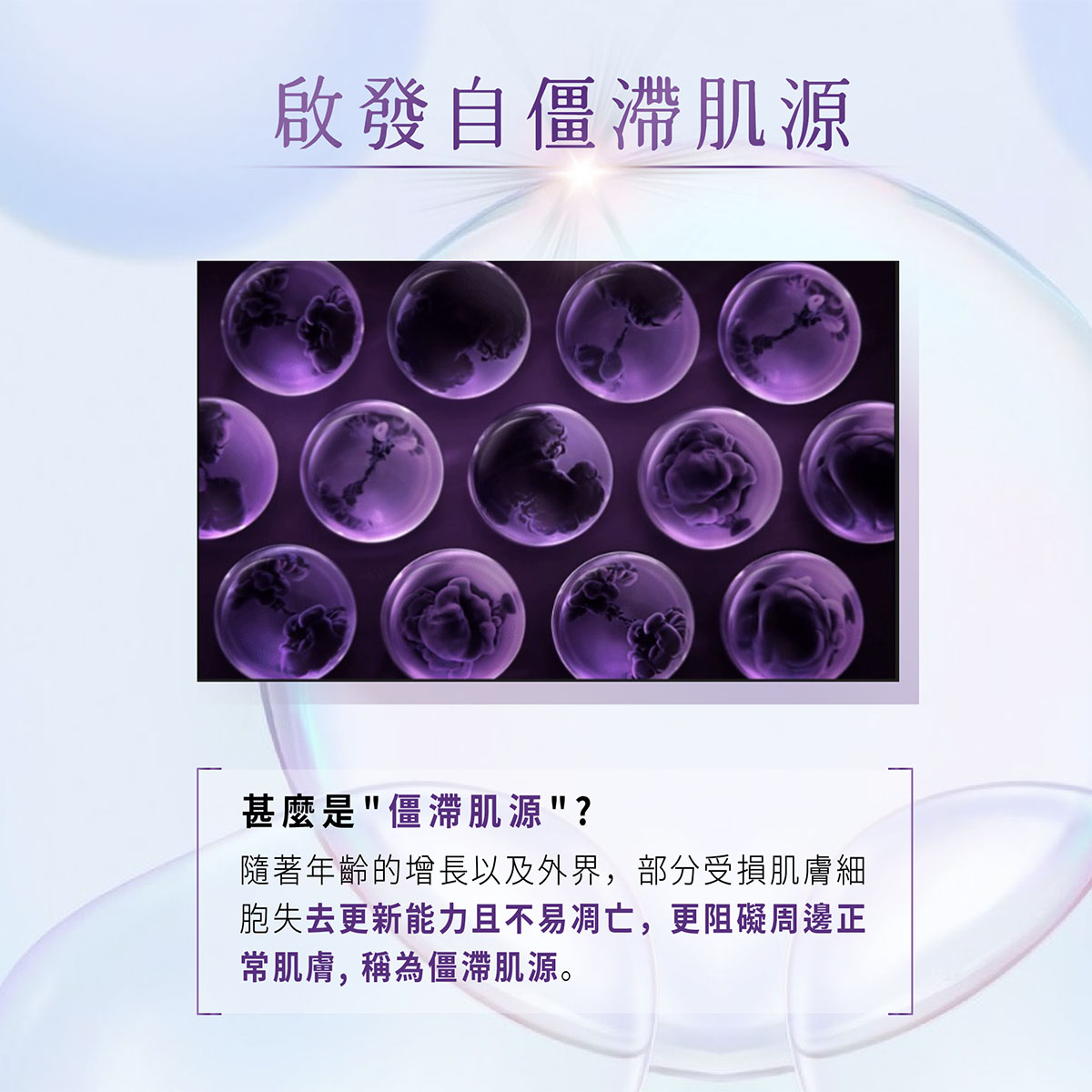 隨著年齡增長,還有壓力、污染、不良飲食及作息等因素,肌膚細胞無可避免地不斷受損,部分細胞停止分裂,並且無法正常運作,失去新生能力之餘,更僵化停滯,阻礙周邊健康的肌膚細胞,這樣的情況稱為「僵滯肌源」,會導致肌膚逐漸變得暗沉、粗糙、失去彈性,初老就是這樣悄悄開始。最近經常被朋友問你是不是很累?搽護膚品時感覺吸收變慢?自拍時發現輪廓沒有之前那麼Sharp?這些都是肌膚開始初老的徵兆。