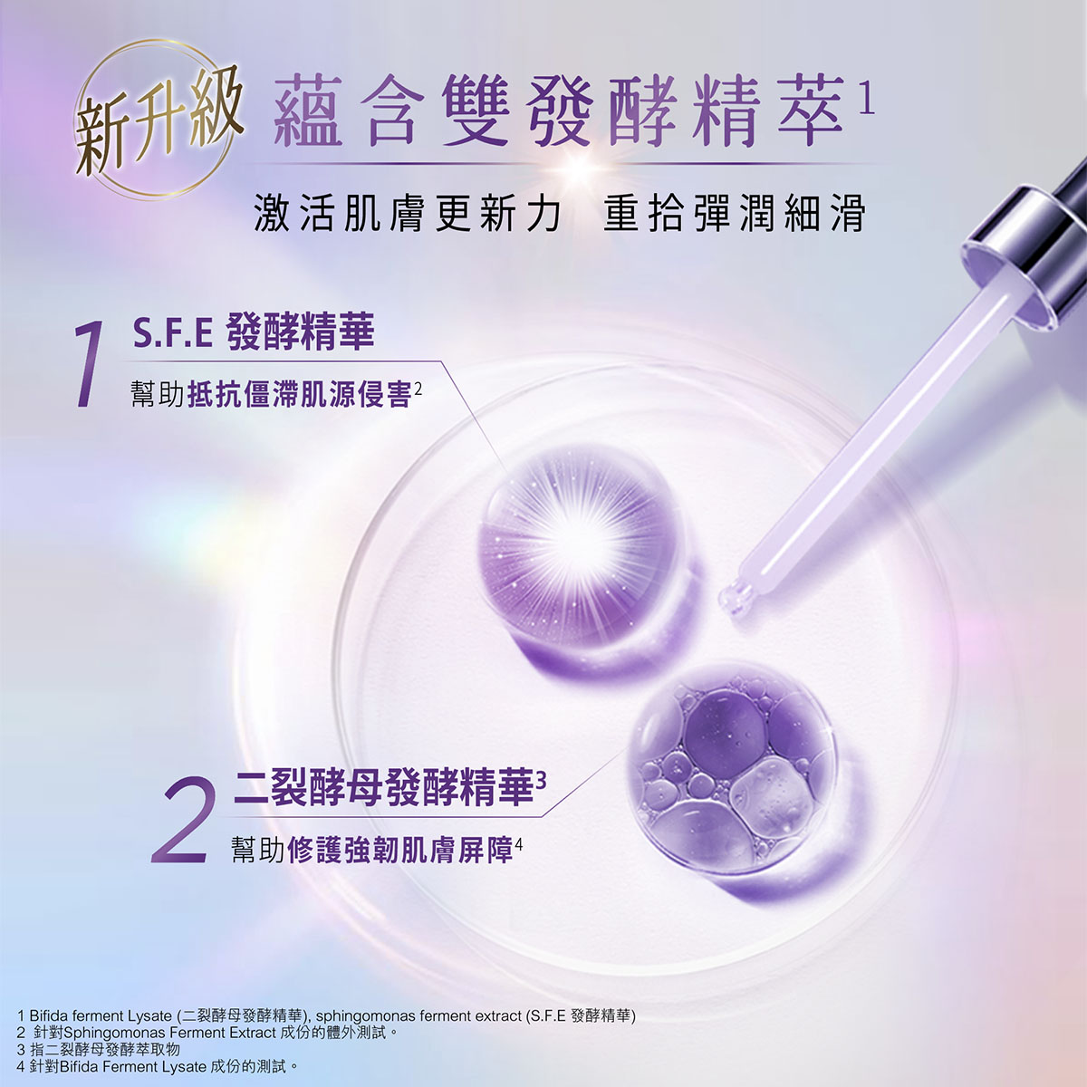 凝聚長達13年生物學研究成果的黑精華3.0,成功解鎖僵滯肌源奧秘,重點是蘊含新升級雙發酵精萃,包括新成份S.F.E發酵精華,幫助抵抗僵滯肌源侵害,從根本對抗衰老,撫平細紋;另外還有二裂酵母發酵精華,幫助修護強韌肌膚屏障,促進肌膚自我更新。兩種發酵精萃相輔相成,強化肌底,針對抗老,令肌膚回復年輕,重拾彈潤細滑。
