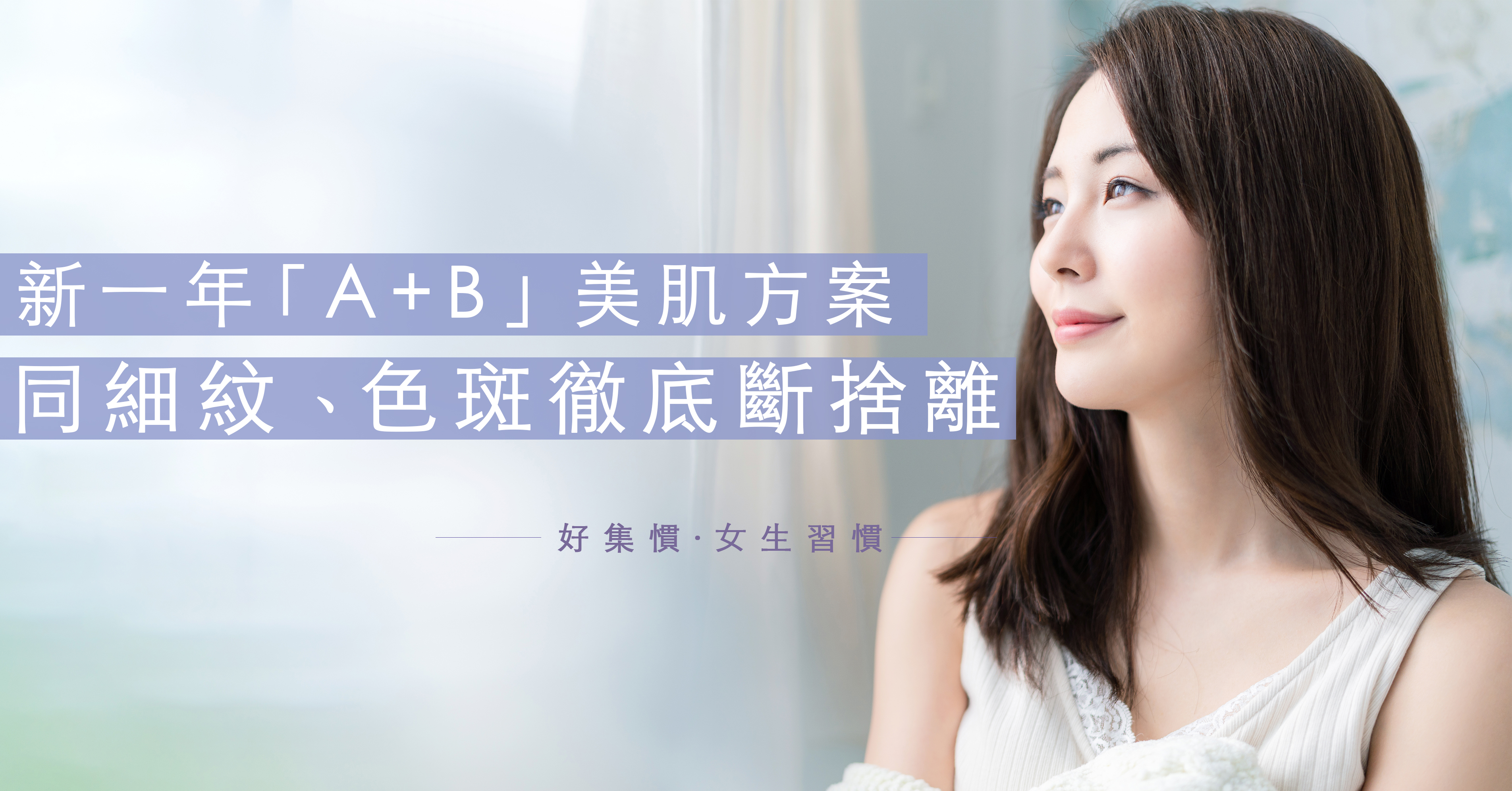 新一年,新的我!一於下定決心向頑固肌膚問題講bye bye!首先重新檢視自己的護膚日常,養成全新護膚好習慣,針對問題根源重點出擊!要擊退色斑和細紋兩大頑固肌膚問題,單用1支精華可不足夠,必須用針對性的精華,並選擇最合拍的CP成分──「維他命A醇」Retinol及「維他命B3」,「A+B」雙管齊下幫肌膚同細紋、色斑徹底斷捨離,還原細滑淨白的零瑕素肌!