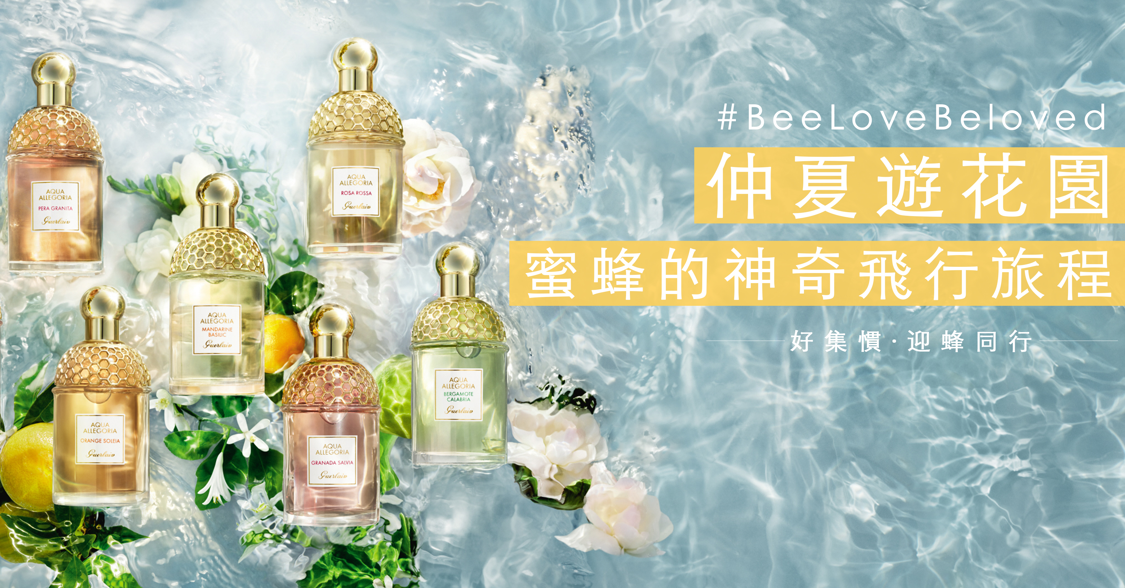 試試幻想自己是一隻小蜜蜂,可以隨心所欲遊歷世上的美麗花園,每天被花草的愉悅芳韻簇擁著,是多麼的幸福!以蜜蜂作品牌標誌及靈感泉源的GUERLAIN就將這美好憧憬化作現實,自推出AQUA ALLEGORIA花草水語香氛系列以來,品牌調香師Thierry Wasser每年都會為系列添加新作,將世界各地搜羅的美麗成分調配成愉悅香調,再幻化成讚美大自然和快樂時光的芬芳頌歌。