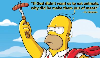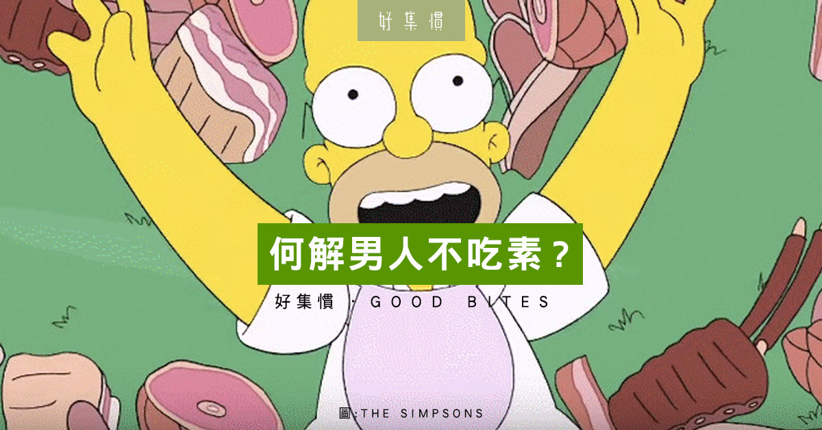 首先,或許真的跟意識形態有關。在美國家傳戶曉的Homer Simpson有一首耳熟能詳的歌曲:“you don’t win friends with salad”, 早已給人一種“real men eat meat.”的印象,這樣,吃肉便是masculine,充滿男子氣概。