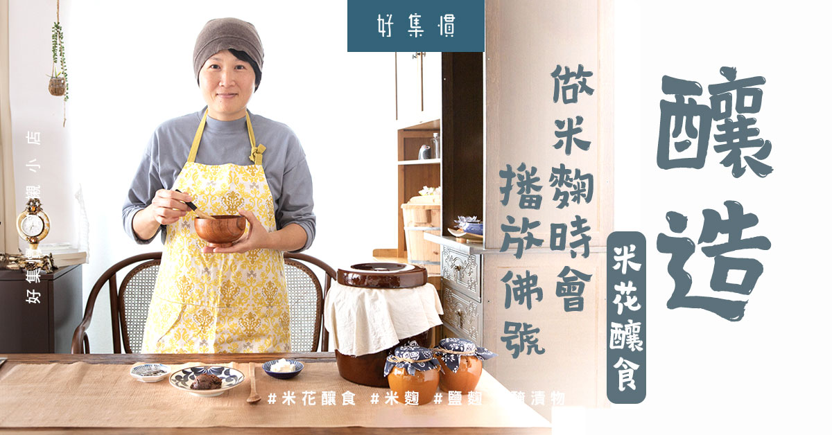 在日本,廚房常用的味噌、醬油、甘酒、味醂、米醋、燒酒等都可用麴來製作。麴是將米、麥、雜糧或大豆等穀物蒸煮後,加麴菌發酵製成。它可產生酵素,分解澱粉轉換成醣類。日本的「糀」字,就是解作米麴中的米花。品牌名為米花釀食,正因Shirley主力研發做米麴產品,她將「糀」字拆開,變成米花釀食這名字。