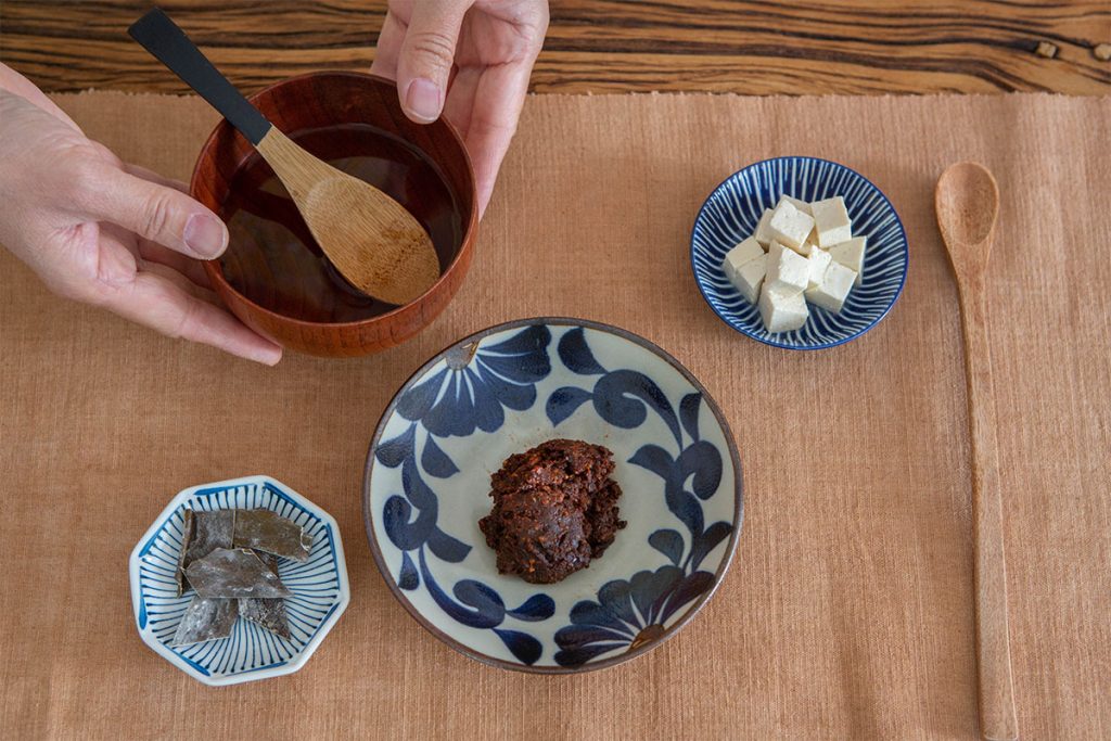 Shirley分享,味噌湯簡單易做,一份味噌、六份水,加入適量豆腐和海帶芽同煮即成。