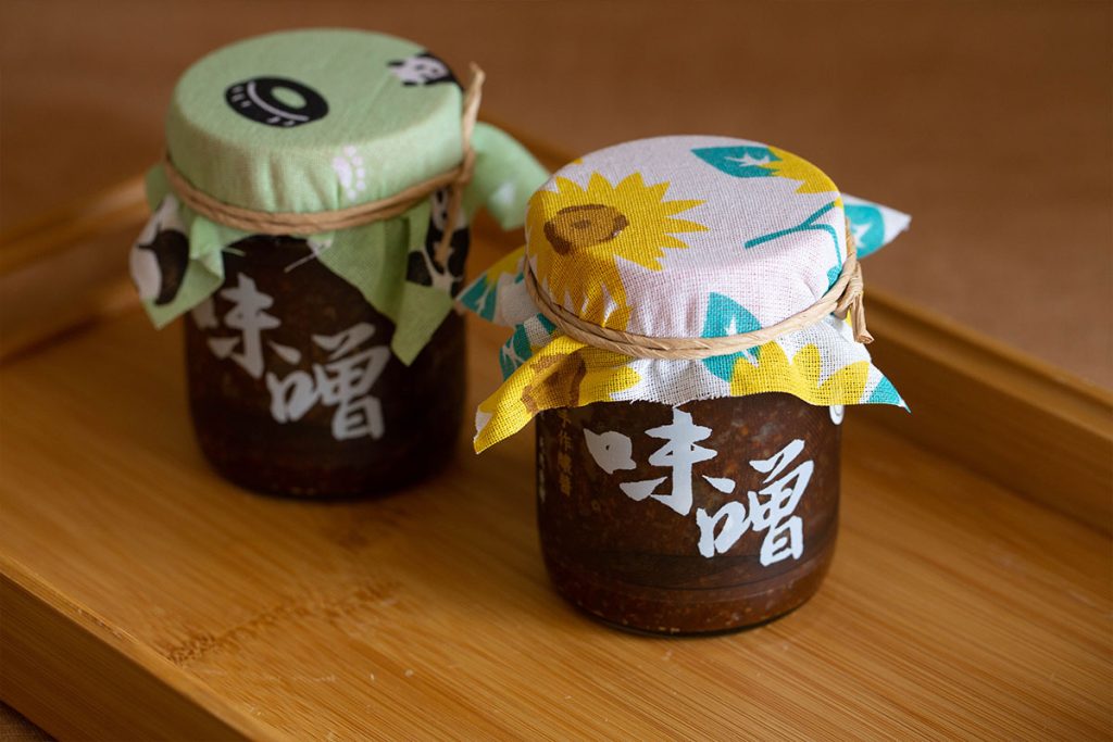 左起:由Shirley釀造的芝麻味噌、原味味噌、紫米麴、味醂,全都有聽經的。