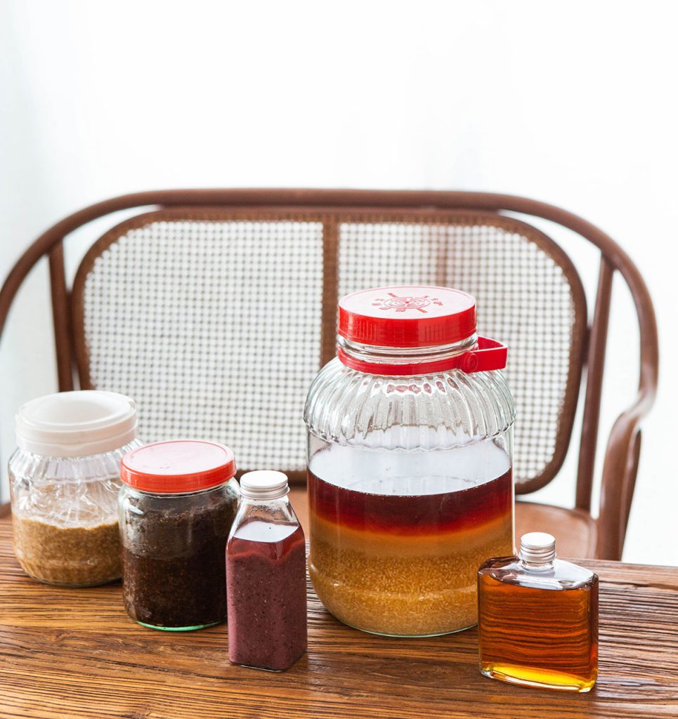 Shirley現在釀造大多是個人生活常吃的款式,譬如味噌、味醂、甘酒。近年認識更多本地農夫,她也喜歡用不同原材料試驗研發其他發酵產品,如早前用南涌農夫的山檸柑製作鹽麴。當日她分享不同製成品給我們淺嘗,如薏米甘酒用薏米加入麴菌發酵而成,沒想到味道有點像菇,很特別。她說早前試味有點像雞腿。「像雞腿和菇的味道,因分解醣類和蛋白質出來,形成胺基酸,即平常形容的鮮味。」她提到,坊間的紙盒裝甘酒,很多酵素已沒了活性。「新鮮做出來的甘酒,它們有活性酵素,是我們人體所需要的。想身心健康,應保持身體多一點酵素。可在外來吸收好的酵素,讓那些酵素幫助身體,不要過度消耗自身的酵素。」