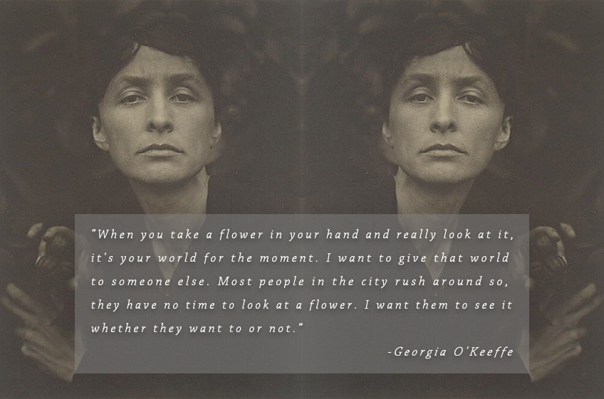 “ When you take a flower in your hand and really look at it, it’s your world for the moment. I want to give that world to someone else. Most people in the city rush around so, they have no time to look at a flower. I want them to see it whether they want to or not.” Georgia O’Keeffe