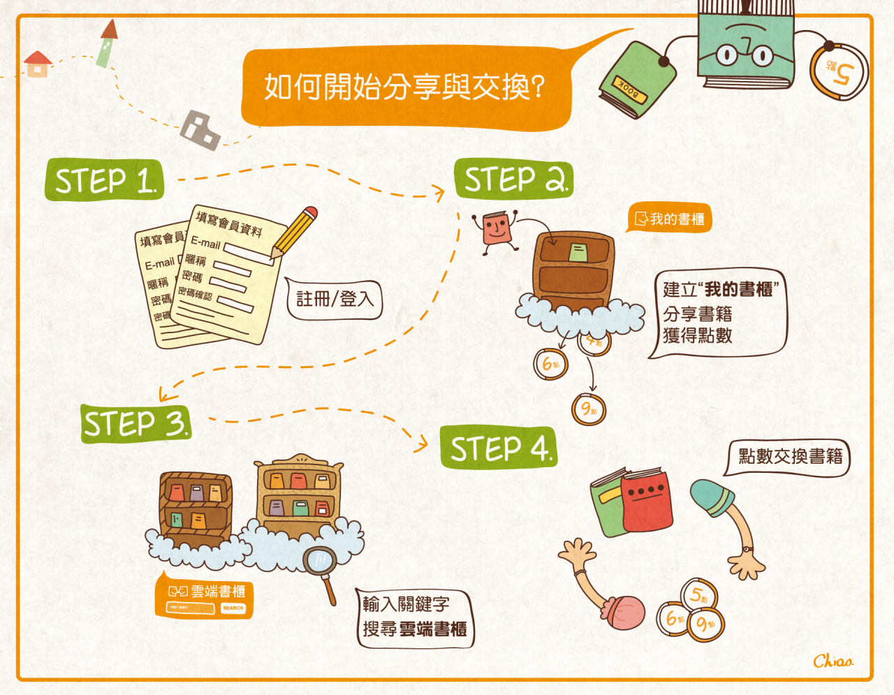 一星期一次,或兩星期一次,甚至不定期也可。規矩是,不要問對方在讀什麼,不要局限對方給你什麼類別的,也不要去猜度他或她的口味。就保持神秘,當作交換禮物。其實最重要的是交換心情、交換思想、交換情感,然後藉交換製造交流。尤其,讀什麼書反映了一部分的你,習慣和別人交換書本便是一種分享,分享自己。也學習從別人手上換來的書中,發掘另一面的自己。下次和朋友聚會,不用只談近況或八卦,一起分享讀後感,可能更能了解對方呢。除了和朋友交換閱讀,其實網上也有一些平台讓大家分享自己的藏書,也讀到自己想讀到的書,讓閱讀更環保一點!