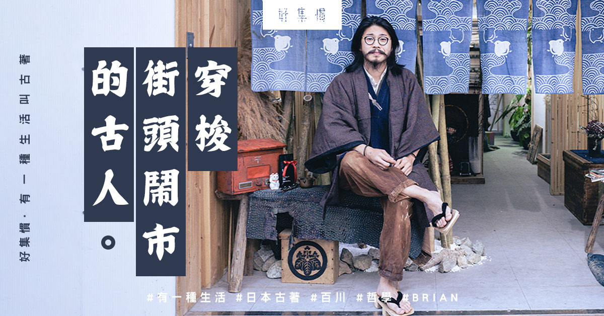 初見 Brian,一頭長髮,留著鬍鬚,腳踩木屐,劍道服外面搭一件木棉羽織,就像從某個日本古時代直接走出來的樣子。別以為因為他開了一家日本古著店「百川」才那樣穿,事實是一年 365 天,他都是這樣穿出街:「當你找到一個方式,而你自己舒服的時候,你會喜歡以這個方式行下去,不會想別的太多。」