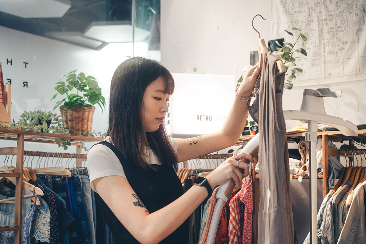 開設實體店後,衣服流轉量變快,「賣一件補一件」,隔星期再來,衣架上或已不一樣。