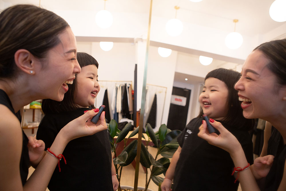 Lucy 最愛扮公主,最愛的一件戰衣正是閃令令的公主裝,點解今日唔著嘅?「因為會整爛㗎。」作為時裝店店主的 Sophia 早說 Lucy 好娘(抵唔抵死,阿媽話阿女娘),卻完全尊重女兒的選擇。「我只願她百分百做自己。」這時,見媽媽補妝塗唇膏,「覺得自己好靚」的Lucy當然心有不甘,嚷着叫媽咪也替她塗上,媽咪作弄 Lucy 把她塗成孖膶腸;Lucy 不單沒有嬲怒,反而是招牌的笑到格格聲,還作出勝利手勢,Lucy 的靚,靚在⋯⋯貪靚,和她的一份自信。有事無事笑咗先。「就算佢喊,好快無事,唔記仇。」Sophia 說。